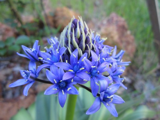 this seems to be not just stream of consciousness but also a rant, which is another option on the weekly writing challenge. i didn’t mean it to be so, perhaps it’s because writing like this is turning into really hard work. it seems my stream of consciousness needs some banks or weirs or culverts to give it form and direction, otherwise it just flows out all over the dry ground and soaks in without a trace. i’m going to post a photo instead. this is a scilla which is flowering in my garden just now, i think it’s Scilla peruviana, and i;m sorry but it needs a capital!